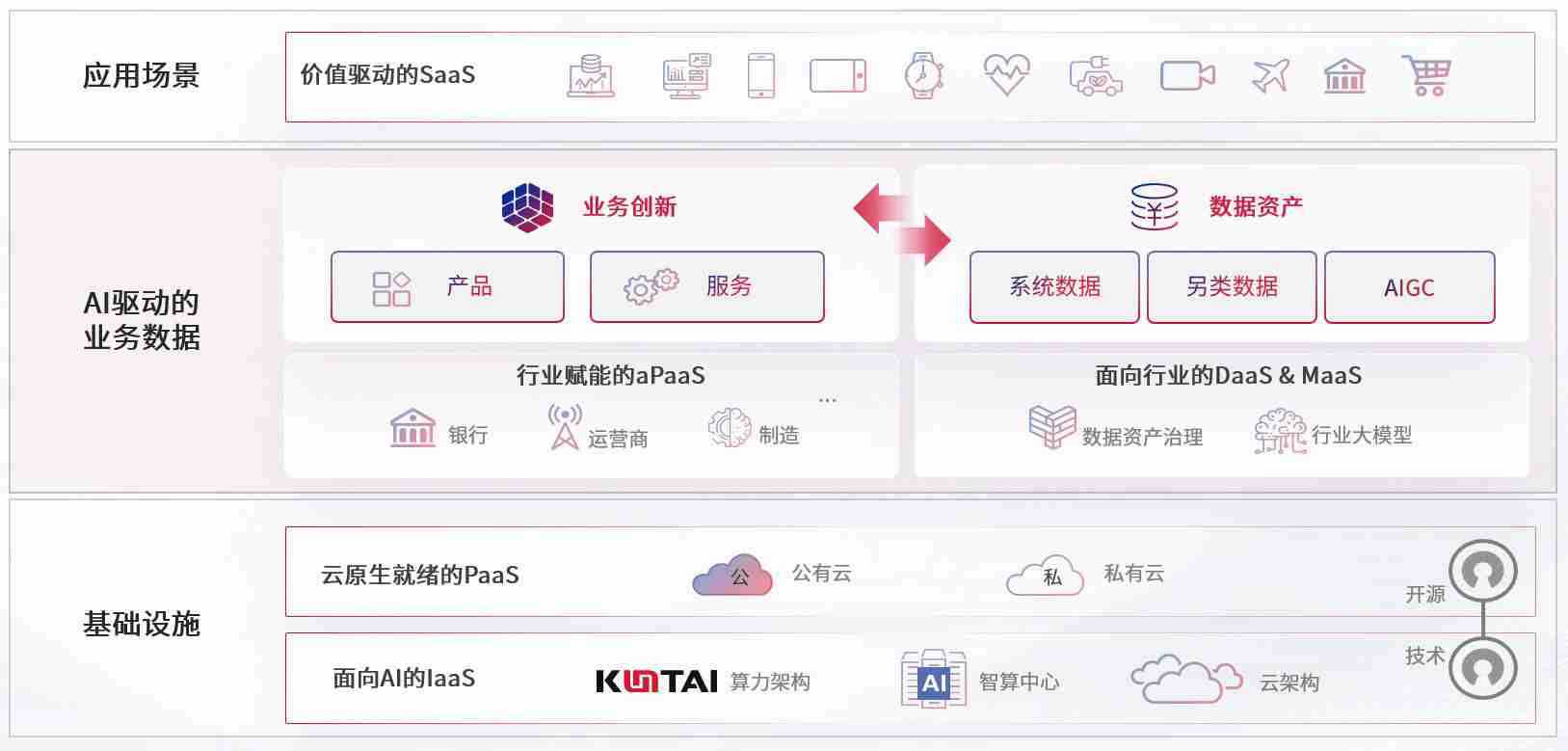 数字时代,,,围绕企业数字化转型的关键要素,,98858vip威尼斯游戏数码开创性的提出数云融合战略和技术体系框架,,着力在云原生、、、、数字原生、、、AI原生和信创产业上架构产品和服务能力,,为处在不同数字化转型阶段的快消零售、、、汽车、、、、金融、、、、医疗、、、政企、、、教育、、运营商等行业客户提供泛在的敏捷IT能力和融合的数据驱动能力,,,,构建跨界融合创新的数字业务场景和新业务模式,,助力企业级客户建立面向未来的核心能力和竞争优势,,,,全面推动社会的数字化、、智能化转型升级。。